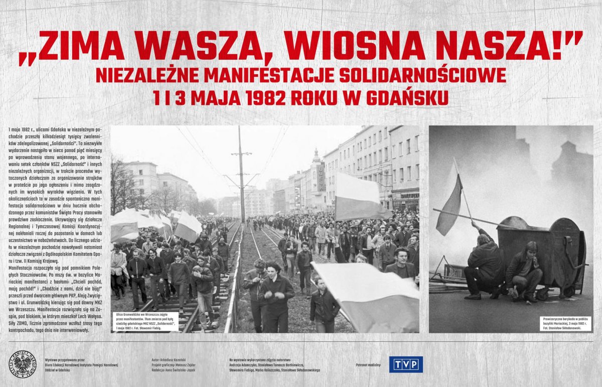W kontekście tamtych wydarzeń przypominamy wystawę IPN Gdańsk „»Zima wasza, wiosna nasza!«” Niezależne manifestacje solidarnościowe 1 i 3 maja 1982 roku w Gdańsku” autorstwa dr. Arkadiusza Kazańskiego, historyka Oddziałowego Biura Edukacji Narodowej IPN w Gdańsku.