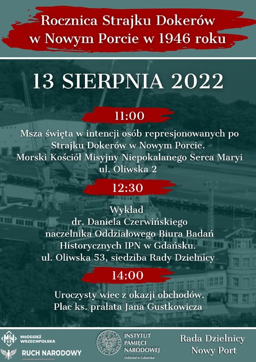13/08/2022ObchodyObchody 76. rocznicy strajku dokerów w Nowym Porcie – Gdańsk, 13 sierpnia 2022