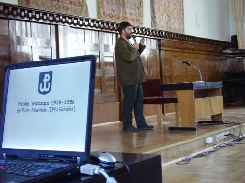 Część merytoryczna zaczęła się od referatu pt. „Polska Walcząca 1939-1945”,który wygłosił dr Piotr Niwiński. Zwrócił on uwagę na fakt, że w okresieokupacji istniało Polskie Państwo Podziemne, które posiadało własne wojsko ilegalne organy władzy. Było to zjawisko bez analogii w Europie.